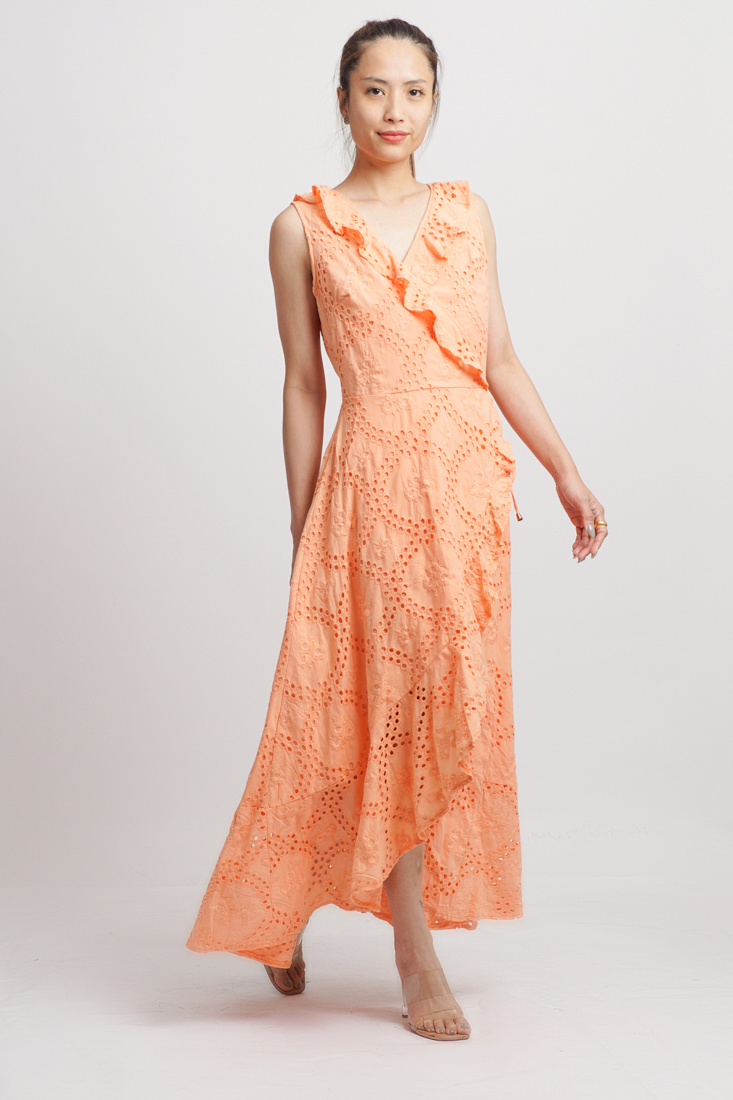 Maxi Cotton Cao Cấp Luna Llena, nền vải Lazer Cut độc đáo, tạo lỗ như ren, sang trọng, chất cotton dày dặn, thân trước đắp chéo, có thể tăng giảm eo. Phom rộng. Có lớp