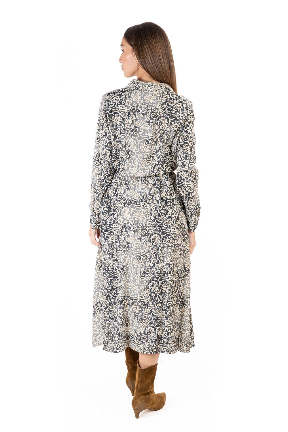 Mua tại TiktokMaxi Sơ Mi Dài Tay Isla Bonita, chất lụa mềm mại, cao cấp. Có dây cột eo. Phom suông. Dài đầm 126cm (45x126)