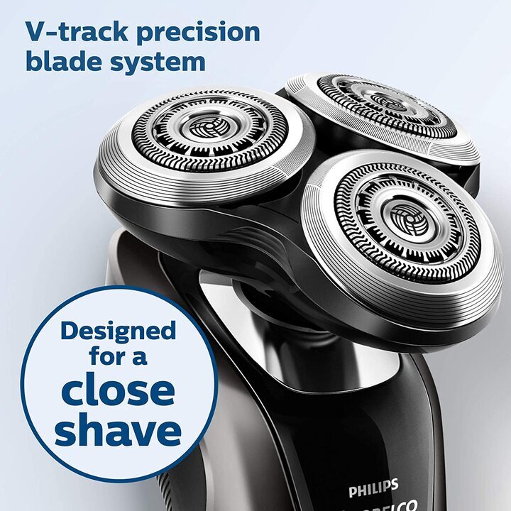 - Đầu cạo Contour Detect linh hoạt theo 8 hướng có thể tự do di chuyển theo 8 hướng khác nhau, đảm bảo tiếp xúc sát với da giúp bạn cạo râu nhanh và sát kể cả ở vùng cổ và quai hàm. Hệ thống hai lưỡi lưỡi cạo MultiPrecision và Super Lift & Cut Action có các đầu cạo được thiết kế lượn tròn trượt êm ái trên khuôn mặt. Với công nghệ nâng và cắt, lưỡi thứ nhất kéo râu từ gốc và lưỡi thứ hai sẽ cắt. Vì lưỡi dao bên trong không chạm trực tiếp vào da nên bạn có thể cạo sâu mà không làm tổn thương da. - Hệ thống hai lưỡi lưỡi cạo MultiPrecision và Super Lift & Cut Action của chúng tôi có các đầu cạo được thiết kế lượn tròn trượt êm ái trên khuôn mặt, tăng khả năng cạo lên đến 20% so với lưỡi cạo râu thông thường. Lưỡi dao chính xác V – Track Precision mang mọi sợi tóc vào vị trí tối ưu.
