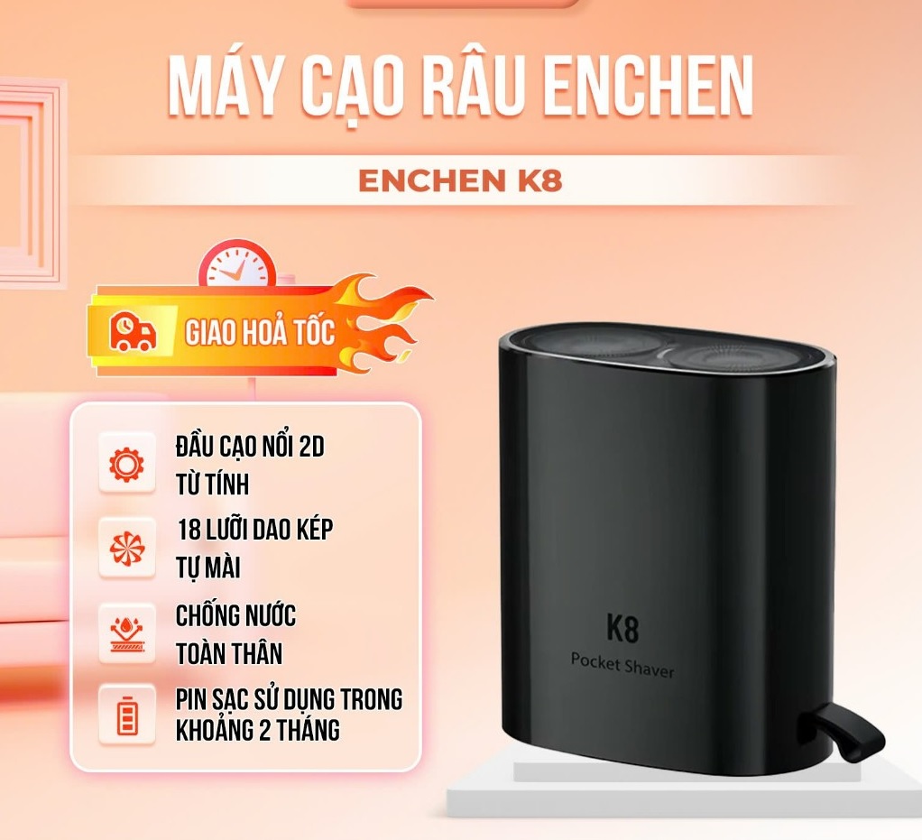 - Để có một vẻ ngoài sang trọng, lịch lãm, đẹp trai cánh đàn ông thường xuyên phải cạo râu mỗi ngày tuy nhiên việc sử dụng những phương pháp cạo râu truyền thống khá tốn thời gian và công sức. Với máy cạo râu Máy Cạo Râu Enchen K8 sẽ giúp bạn thay đổi bề ngoài một cách nhanh chóng.