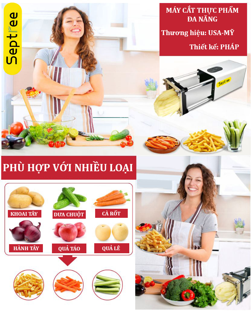 Máy cắt rau củ quả đa năng thương hiệu Mỹ Septree SL-12 Máy cắt khoai tây chiên đa năng và các loại củ, quả. Thương hiệu Mỹ mang phong cách kiểu dáng Pháp