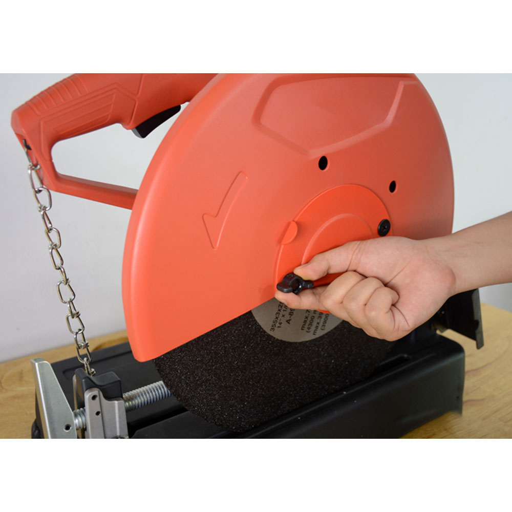 Sản phẩm sử dụng đĩa cắt có đường kính 355mm và đường kính lỗ 25,4mm cùng thiết kế vành bảo vệ quanh đĩa cắt đem đến sự an toàn cho người sử dụng khi cắt, tránh được sự không an toàn khi sử dụng.