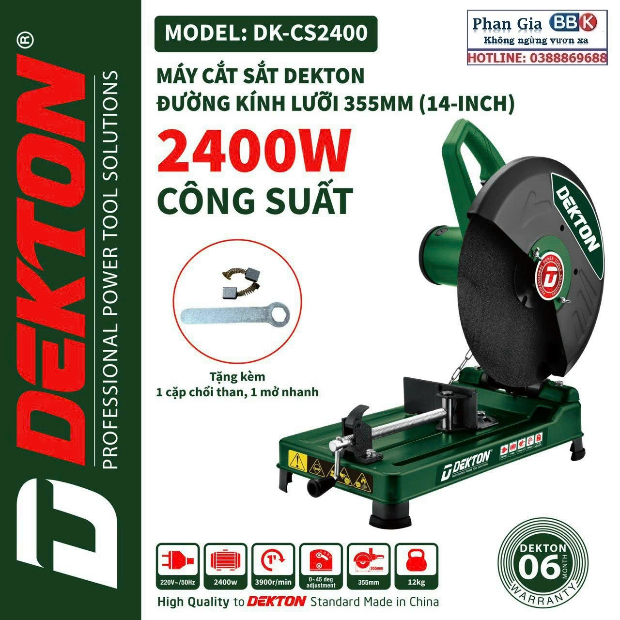 ✨Máy cắt sắt DEKTON 355mm, công suất 2400W, chính hãng nhật bản (tặng lưỡi cắt- bảo hành 12 tháng)