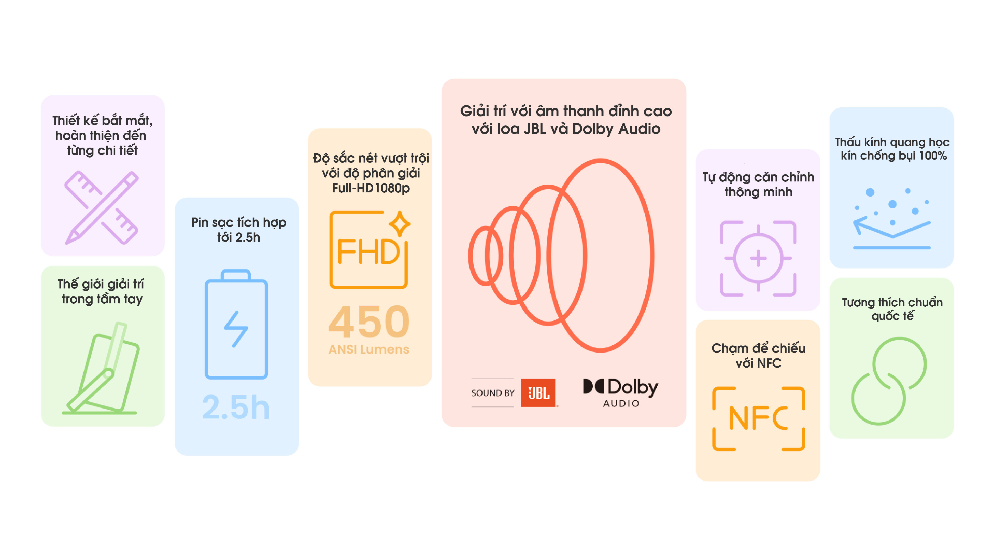 CHÚNG TÔI BIẾT HIỂU BẠN CẦN GÌ Với thiết kế nhỏ gọn, màn hình full HD…úng tôi mở ra cho bạn những trải nghiệm không thể hoàn hảo hơn so với những dòng máy chiếu