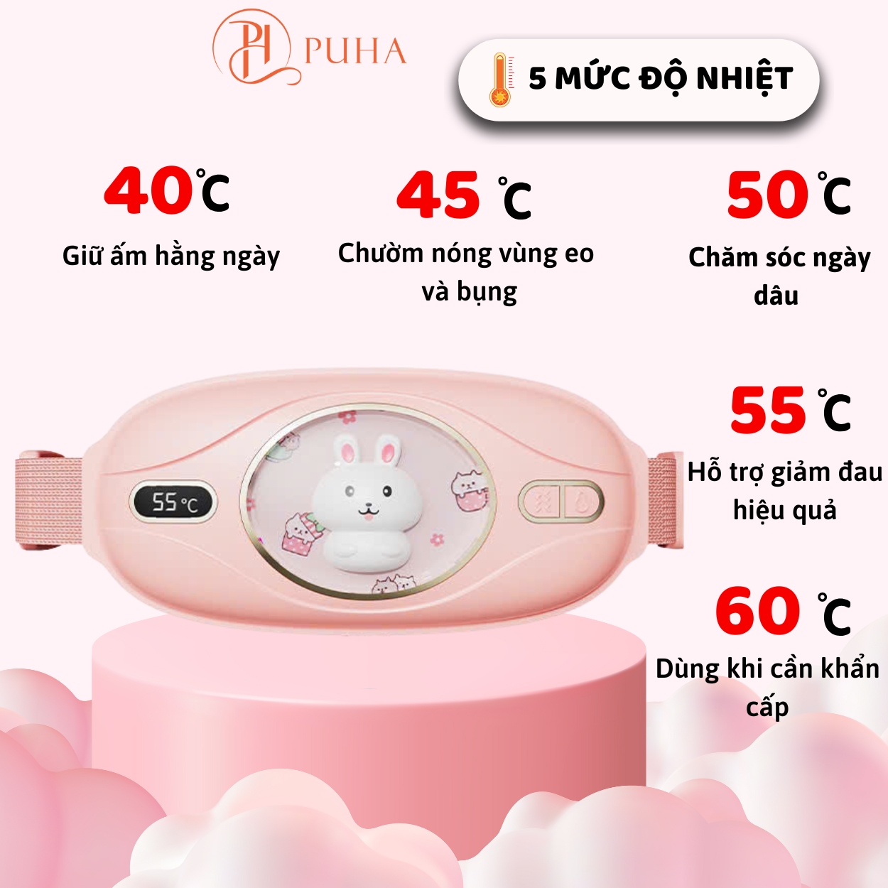 ✨Máy chườm nóng hỗ trợ giảm đau bụng kinh PUHA, có 5 mức nhiệt, Pin 3600MAH , sạc UBS, món quà ý nghĩa tặng người yêu