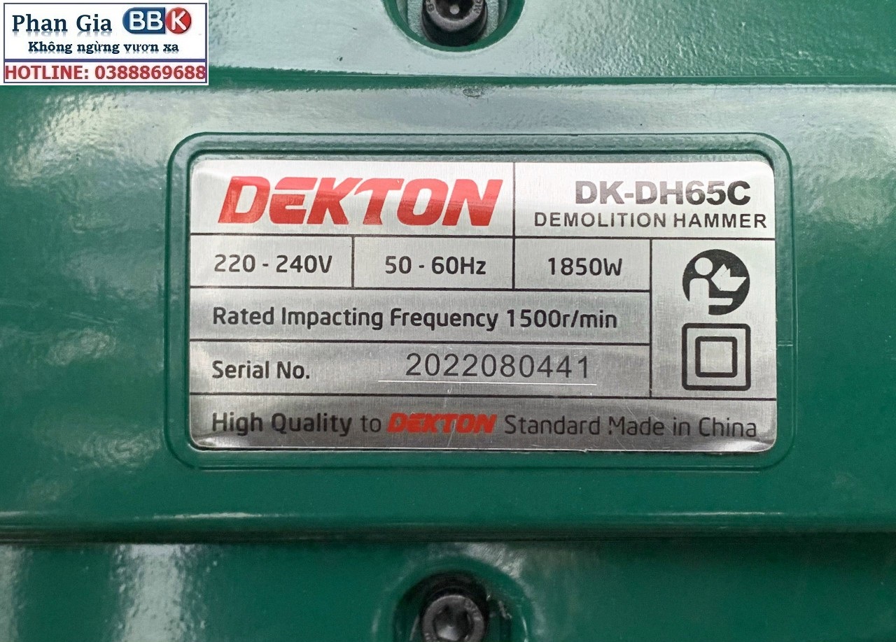 • Máy đục bê tông Dekton 30ly Dk-65 1850w tặng 2 mũi đục