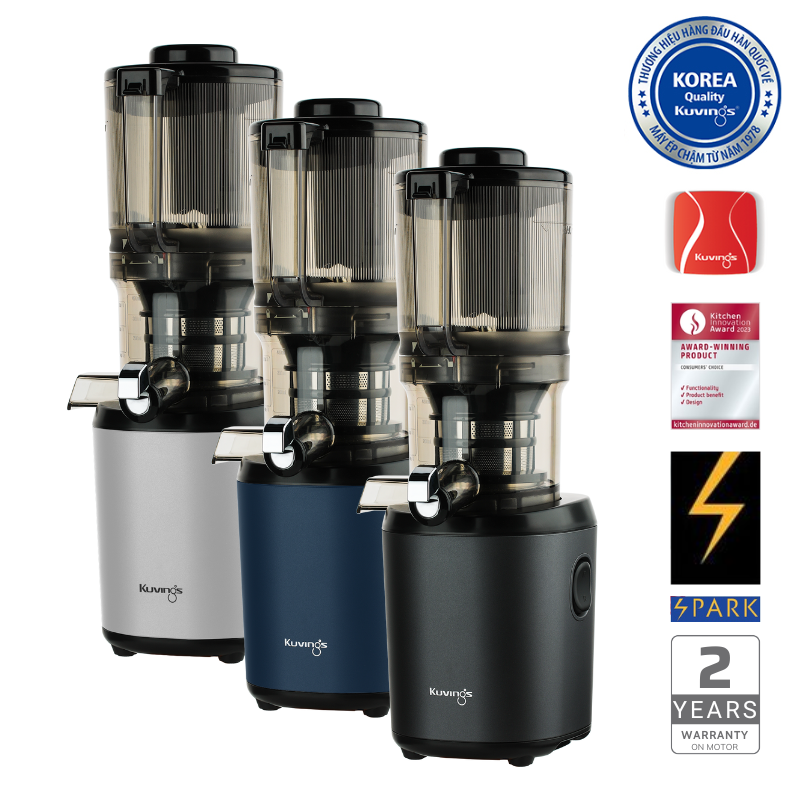 Máy ép trái cây tốc độ chậm hiệu Kuvings Series Hands-Free tự động cắt và ép trái cây cho lượng nước ép nhiều gấp 2 lần, giữ được nhiều Vitamin, Enzym trong rau củ quả gấp
