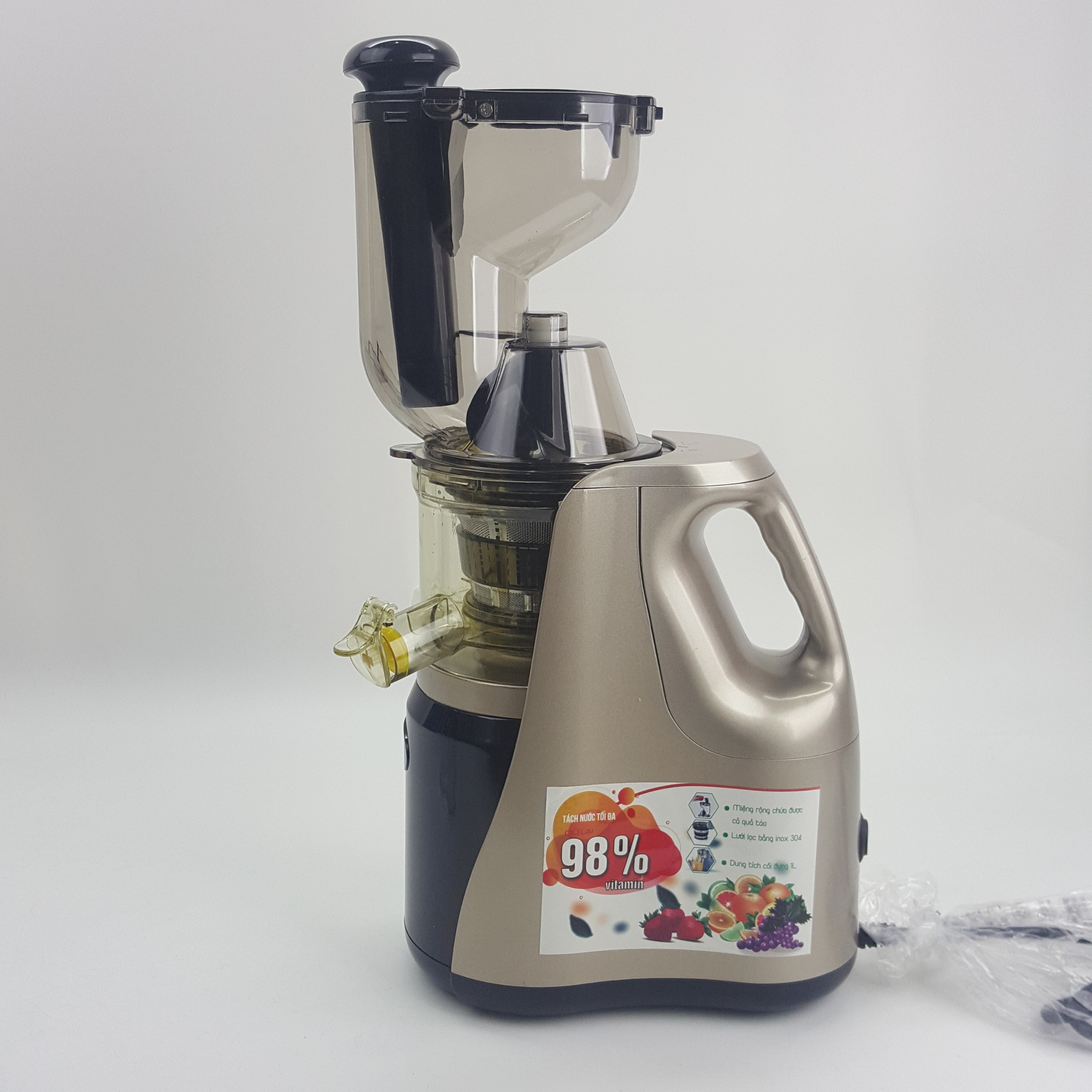 Tên sản phẩm - Máy ép chậm Tính năng sản phẩm : - Thiết kế tính tế nhỏ gọn, sang trọng - Sử dụng đông cơ siêu êm khỏe ép được tất cả củ quả