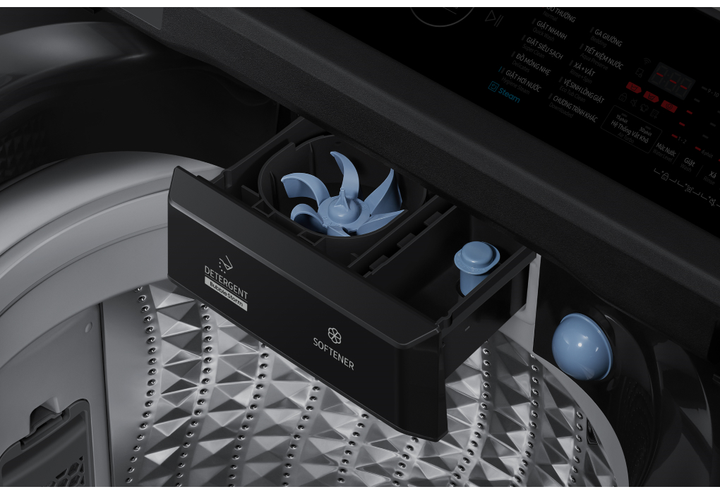 - Hình ảnh chỉ mang tính chất minh họa Công nghệ giặt đặc biệt - kết hợp với xoáy nước siêu mạnh Dual Storm giúp hòa tan bột giặt, tăng hiệu quả thẩm thấu vào sợi vải, đánh tan vết bẩn và loại bỏ mảng bám hiệu quả mà không cần sử dụng nước nóng.