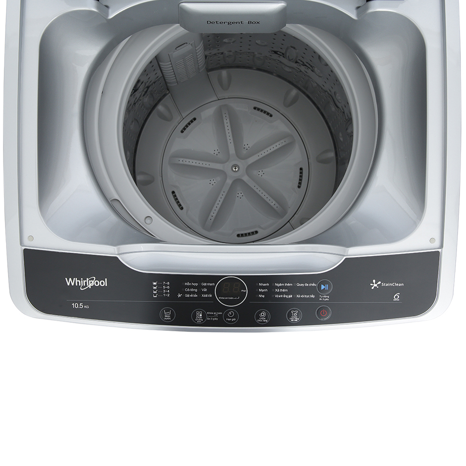 - Lồng giặt: làm từ thép không gỉ chống ăn mòn tốt, hạn chế bám bẩn, dễ dàng làm sạch, giữ lồng giặt luôn sáng sạch, vệ sinh trong suốt thời gian dài sử dụng. Khối lượng giặt và chương trình giặt - Máy giặt Whirlpool với khối lượng giặt tối đa là 10.5 kg, thích hợp cho nhu cầu giặt giũ của gia đình có trên 7 thành viên.