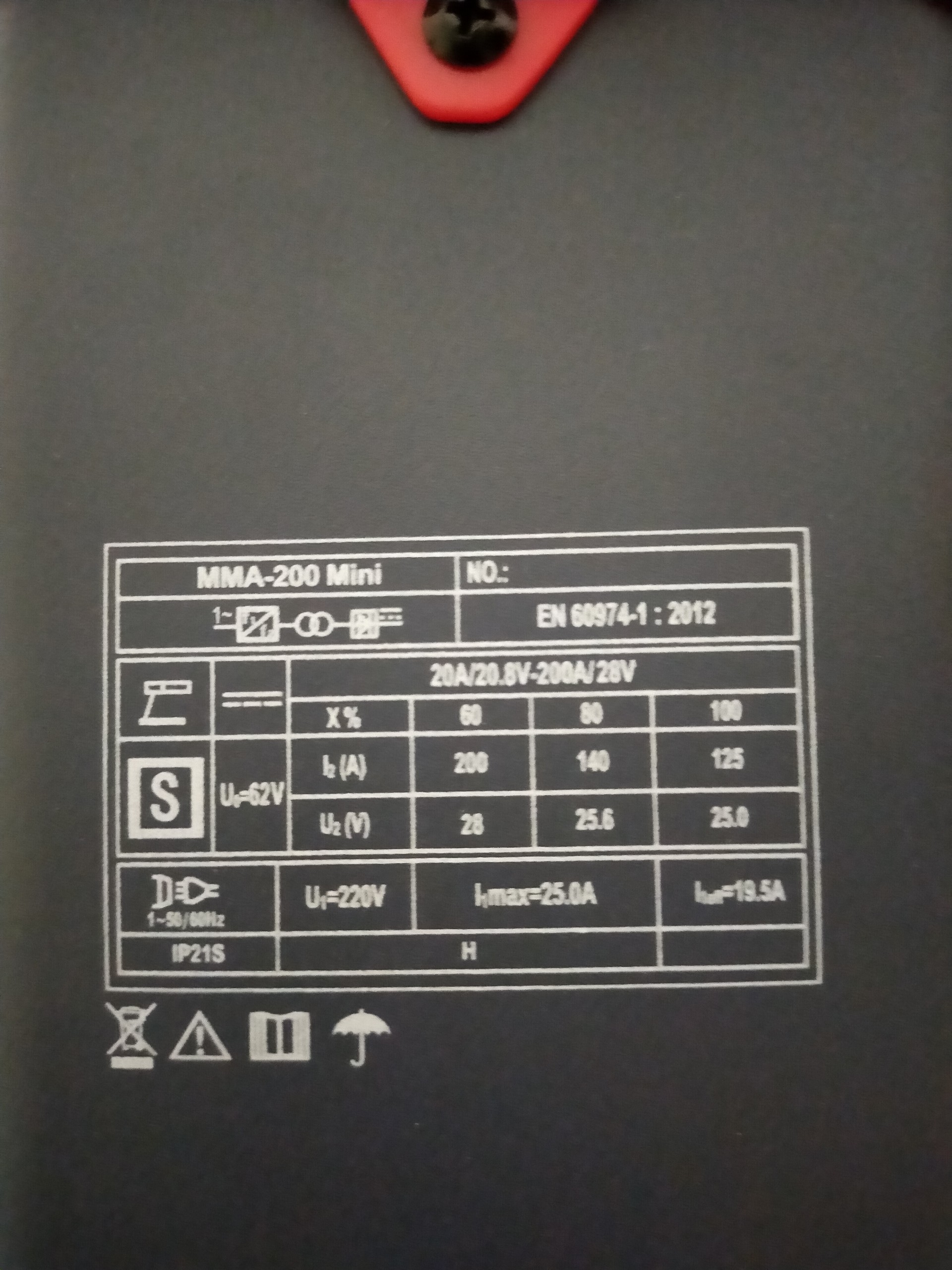 Thông số kỹ thuật Phạm vi điều chỉnh dòng hàn 20A - 200A Đường kính que hàn 1,6mm - 3,2mm ( Hiệu suất tối đa với que 2,5 mm) Kích thước 230mm x 100mm x