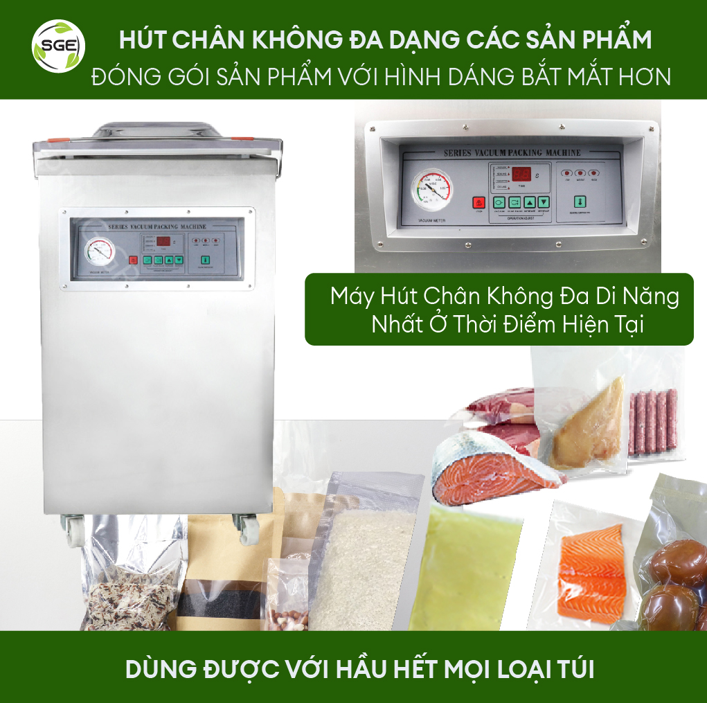 - Là máy hút chân không có thể sử dụng đối với nhiều loại túi/sản phẩm nhất tại thời điểm hiện tại