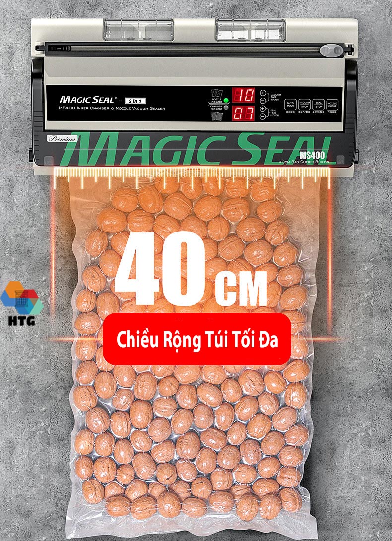 ✨Máy hút chân không thực phẩm Magic Seal MS400 không kén túi, hút khô và hút nước, mối hàn dính lớn 8mm kín kẽ, hút mạnh mẽ, tự động và bán tự động, hàng chính hãng