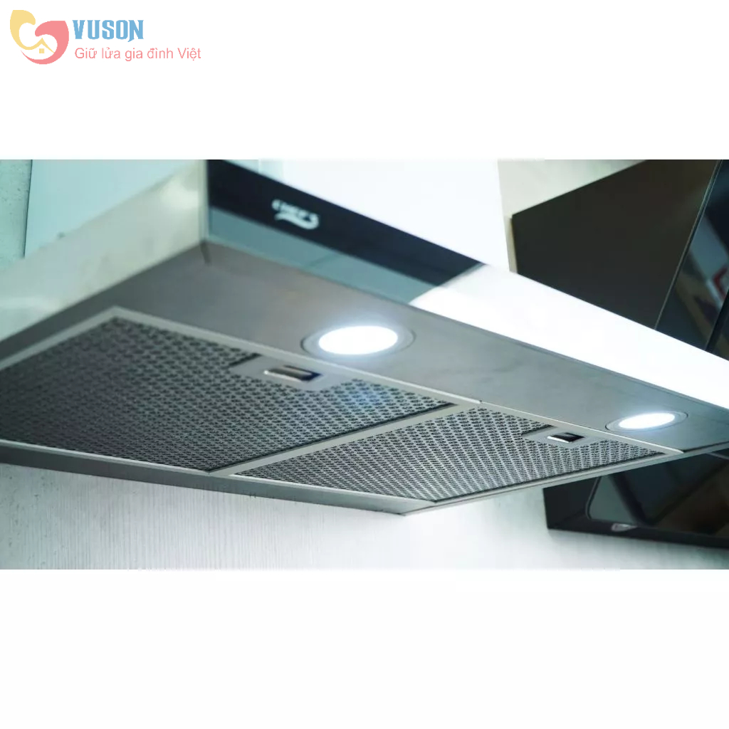• Thân bằng inox không rỉ • Điều khiển cảm ứng 3 tốc độ • Lưới lọc nhôm + than hoạt tính • Đèn led 1×2 W • Motor 1×230 W • Công suất hút
