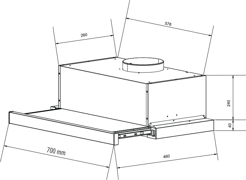 Kiểu máy toa kính Điều khiển: cảm ứng Khử mùi bằng than hoạt tính Lưới lọc Aluminum 5 lớp Chất liệu: Inox – Kính đen Công suất động cơ: 198W Kích thước: 700mm Ống thoát: