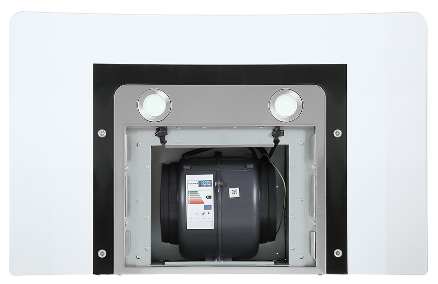Chất liệu Inox-Kính Điều khiển cảm ứng điện tử + Hẹn giờ Màn hình hiển thị LCD Ống thoát Ø 150mm Đèn Led tiết kiệm điện:4x1.5W Bộ lọc than hoạt tính và lưới lọc Inox