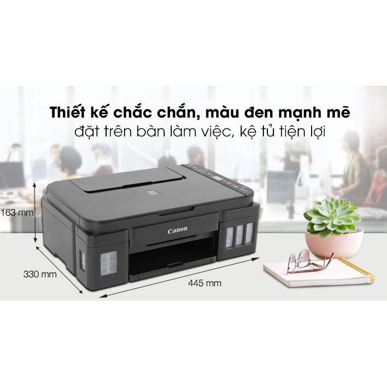 Kiểu dáng chắc chắn, tiện dụngMáy in Canon Pixma G3010 có màu đen sang trọng, chi tiết tinh xảo, hoàn thiện, lắp đặt trên các bàn làm việc, kệ tủ, kệ bàn gọn đẹp, không chiếm nhiều diện tích....