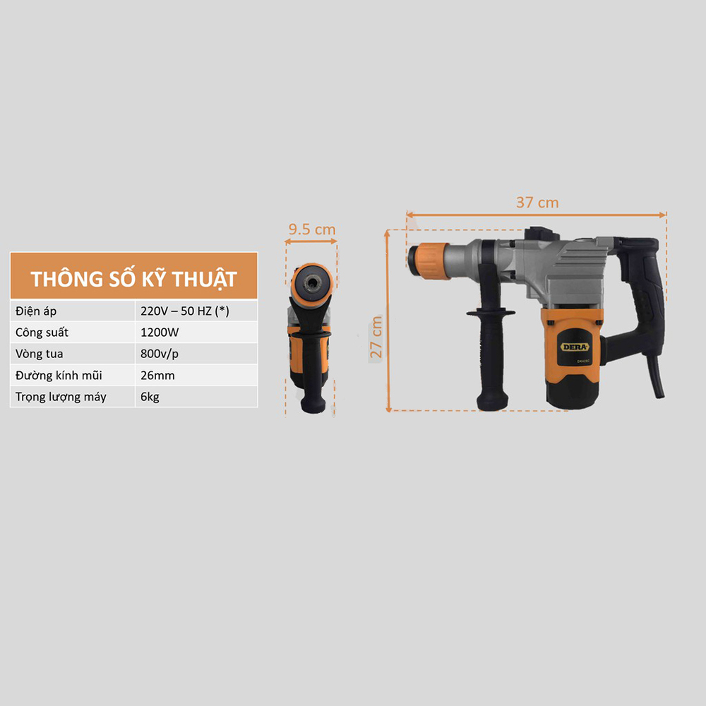 Máy Khoan Đục Bê Tông Dera DK426C, Mũi 26mm, Công Suất 1200W - Hàng Chính Hãng