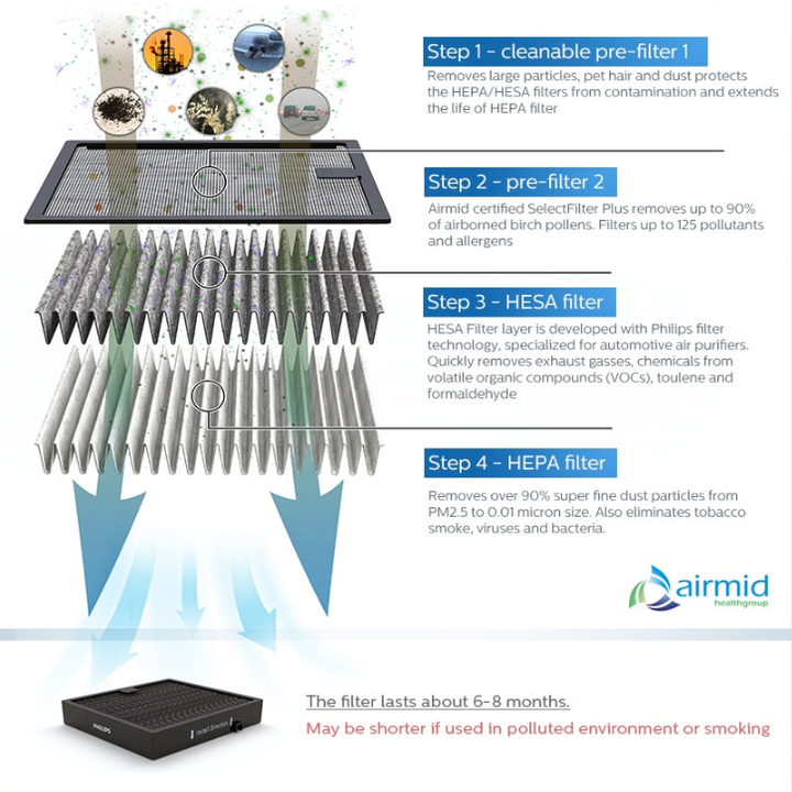 - Bộ lọc được chứng nhận Airmid loại bỏ 90% chất gây dị ứng trong không khí