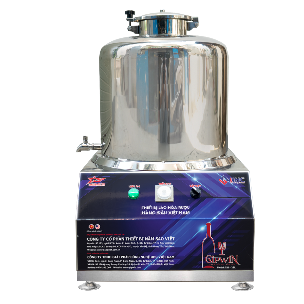 Tại Việt Nam, Máy lão hóa rượu Gipwin là công nghệ ưu việt nhất, khác biệt hoàn toàn với các phương pháp xử lý thông thường. Sản phẩm máy lão hóa rượu Gipwin 35L dùng công nghệ điện từ trường, không phải là máy lọc phổ thông trên thị trường.
