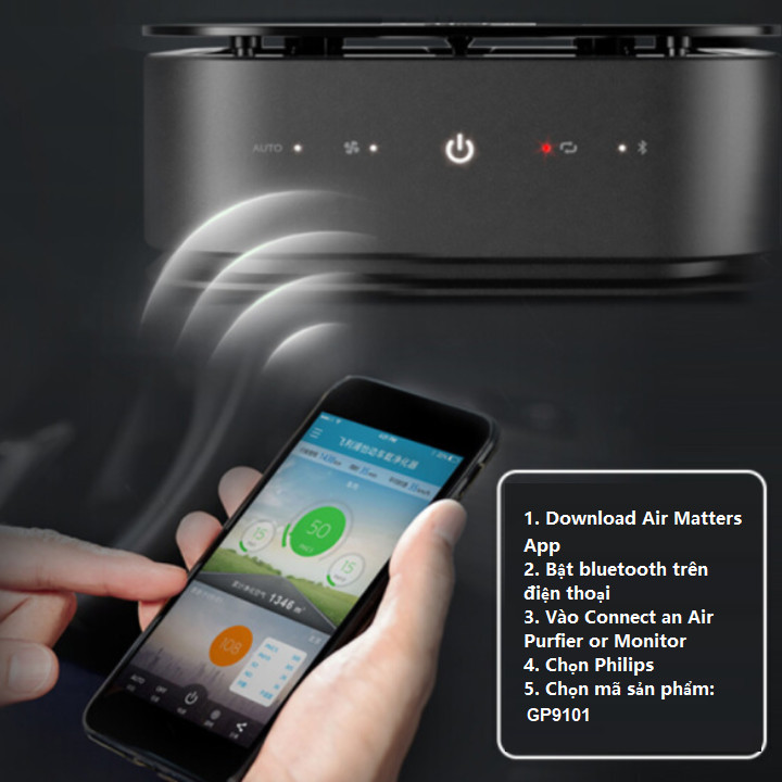✨Máy lọc không khí, khử mùi trên xe ô tô cao cấp nhãn hiệu Philips GP9101 cảm biến chất lượng không khí 6 màu AQI, điều khiển từ xa bằng App điện thoại - Hàng nhập khẩu