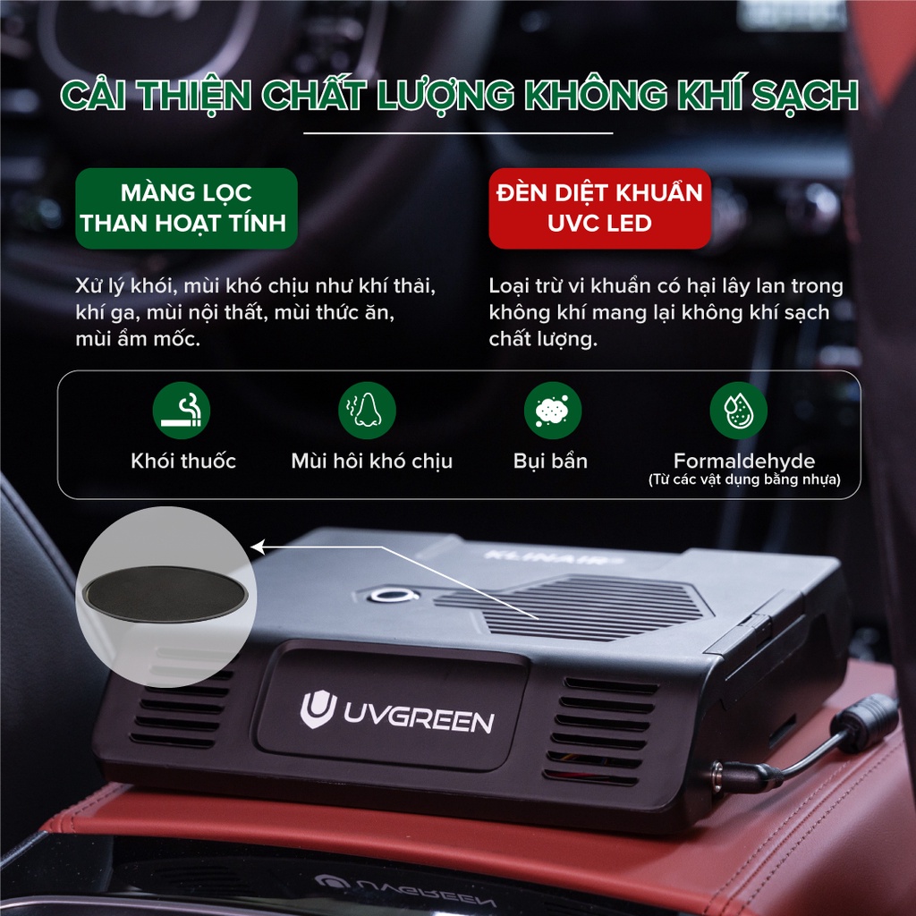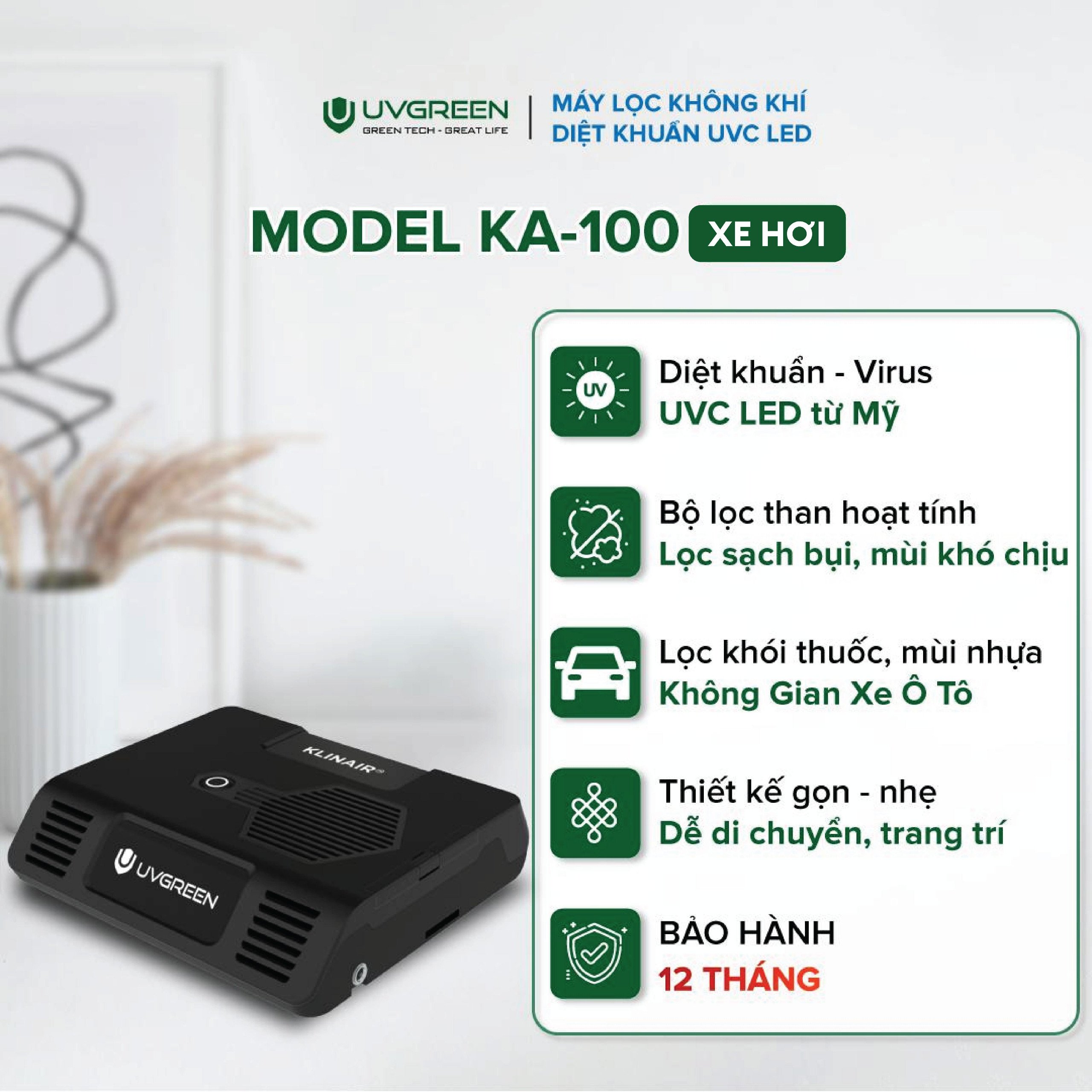 Máy Lọc Không Khí Ô Tô, Khử Mùi, Diệt Khuẩn UVGREEN KA100 - Công Nghệ UVC LED Từ Mỹ, Lõi Lọc Than Hoạt Tính Lọc Bụi Mịn, Loại Bỏ Mùi - Bảo Hành 12 Tháng