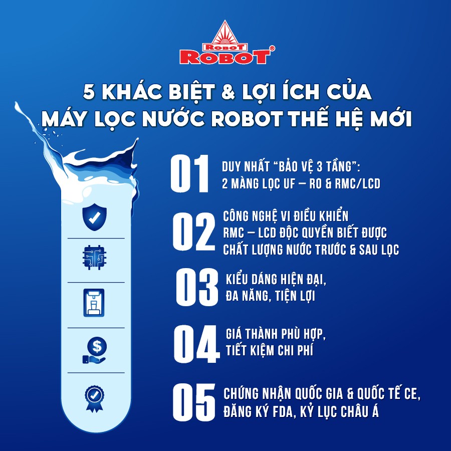 Máy Lọc Nước Nóng Lạnh ROBOT Duy Nhất 2 Màng Lọc UF + R O + RMC LCD