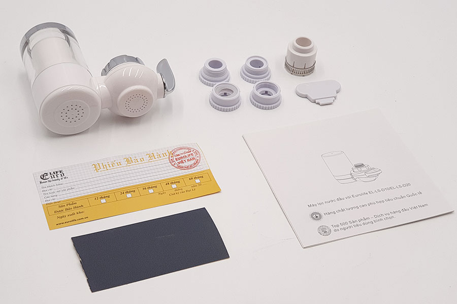 - Lõi lọc cho chất lượng nước đạt chỉ tiêu Bộ Y tế do Viện Pasteur kiểm định THIẾT KẾ VÌ SỨC KHỎE Hiện nay, chất lượng nước đang là mối quan tâm hàng đầu của các gia đình. Nhưng với mật độ công nghiệp hóa và ô nhiễm môi trường, đặc biệt ở thành phố thì vấn đề nước sạch luôn được quan tâm. Eurolife trân trọng giới thiệu sản phẩm mang tính đột phá về công nghệ, xanh, sạch, an toàn và thân thiện với người sử dụng : Máy lọc trực tiếp đầu vòi Eurolife EL-LS-D10-1 (Trắng) CÔNG NĂNG HOÀN HẢO Loại bỏ đến 99.99% vi khuẩn, vi sinh, các chất độc hại, clo, kim loại nặng, thuốc trừ sâu, rong rêu trong nước, đồng thời khử mùi, giúp nguồn nước trong lành, tươi mát và mềm mại hơn bao giờ hết. An toàn cho việc ăn uống và nấu nướng. Đầu vòi trực tiếp được thiết kế với hai chế độ chảy, dòng nước xoắn tạo bọt, tránh văng bắn, tiết kiệm nước tối đa cho người sử dụng ! Một chế độ tăng áp và 1 chế độ chảy thông thường. VIỆN PASTEUR CHỨNG NHẬN CÁC CHỨC NĂNG SỬ DỤNG Máy lọc với thiết kế 2 chức năng chảy , bao gồm cả chức năng tăng áp cho vòi nước khi không lọc. 1 - Chế độ tăng áp cho vòi khi không qua máy lọc Chế độ tăng áp chảy xối mạnh mẽ, giúp bạn rửa rau củ hay những đồ vật có bám dính cao, tiện lợi và hữu ích ! 2 - Chế độc qua lõi lọc Các mặt chức năng chảy của máy lọc Núm chuyển đổi chức năng dòng chảy Núm điều chỉnh linh động, xoay 360 độ, mạ Chrome sang trọng, thuận tiện cho việc sử dụng. Thiết kế khỏe khoắn và chắc chắn ! Cốc lọc thiết kế trong suốt, có thể quan sát độ dơ của lõi lọc bên trong. Đầu lọc có thể xoay một góc 30 độ để điều chỉnh hướng dòng chảy theo nhu cầu sử dụng. Thiết kế riêng rẽ từng phần, giúp người sử dụng dễ dàng lắp đặt, thay thế cũng như súc rửa vệ sinh sản phẩm. CẤU TẠO CỦA LÕI LỌC Lõi lọc được thiết kế hoàn hảo với 7 cấp độ lọc, giúp nguồn nước tinh khiết hơn bao giờ hết. Lõi lọc có tuổi thọ cao, có thể vệ sinh định kỳ, tăng tuổi thọ sản phẩm. Lõi lọc sử dụng cho khoảng 2.000 lít nước sạch. Tương đương khoảng thời gian từ 03 đến 06 tháng, tùy từng nguồn nước sử dụng. Chi phí để sử dụng nguồn nước sạch chưa bao giờ có thể tiết kiệm hơn với Eurolife, bởi chúng tôi không chỉ cung cấp máy lọc nước EL-LS-D10, mà còn cung cấp lõi lọc cho từng loại với mức giá cực kỳ tiết kiệm (Hãy tìm sản phẩm Lõi lọc máy lọc nước tại vòi EL-RS-D10 trên Lazada bạn nhé) Mỗi ngày, chi phí cho nguồn nước tinh khiết duy nhất chỉ với 1.000 VNĐ. Thật không thể tưởng tượng, vì điều đó chỉ có ở Eurolife, bởi vì chúng tôi luôn quan tâm đến bạn, đến sức khỏe của gia đình bạn và giảm thiểu tối đa các chi phí mà bạn cần trang trải. Lưu ý quan trọng : Đối với nguồn nước nhiễm phèn và hóa chất nhiều, lõi lọc sẽ nhanh vàng và phần sứ sẽ mềm đi nhanh chóng. Vì vậy, hãy súc rửa lõi lọc thường xuyên để tránh tình trạng nghẹt nước. Khi gỡ lõi lọc ra khỏi máy, lên lưu ý xoay lõi lọc nhẹ nhàng và lắp đặt thẳng, đúng chiều quy định tránh tình trạng bể vỡ lõi lọc. Khi lõi mềm đi, hoặc nghẹt nước nhiều là lúc cần được thay thế. PHỤ KIỆN ĐI KÈM Bộ sản phẩm đi kèm với 5 đầu lắp đặt khác nhau, 2 đầu cho những lắp đặt thông dụng nhất, kèm khóa vặn, giấy nhám, bạn không cần phải mua thêm bất cứ linh kiện nào khác ! THÔNG SỐ KỸ THUẬT SẢN PHẨM ĐÓNG GÓI SẢN PHẨM DỄ DÀNG LẮP ĐẶT Bộ sản phẩm đi kèm với 5 đầu lắp đặt khác nhau, 2 đầu cho những lắp đặt thông dụng nhất, kèm khóa vặn, giấy nhám, bạn không cần phải mua thêm bất cứ linh kiện nào khác ! Sản phẩm có thể lắp đặt cho nhiều loại vòi rủa khách nhau như: vòi rửa chén, vòi lavabo, vòi hồ, vòi sen.. với các đầu ren trong hoặc rean ngoài 21mm, với các loại vòi không có ren phù hợp, máy lọc nước đã đi kèm một đầu nối đa năng có thể lắp đặt thuận tiện hơn. THỰC TẾ LẮP ĐẶT CÙNG VÒI CHẤT LƯỢNG HÀNG ĐẦU Thương hiệu Eurolife Việt Nam là một thương hiệu uy tín hàng đầu trên thị trường Việt Nam với 12 năm kinh nghiệm Các sản phẩm Eurolife đạt nhiều chứng chỉ uy tín trong nước như :