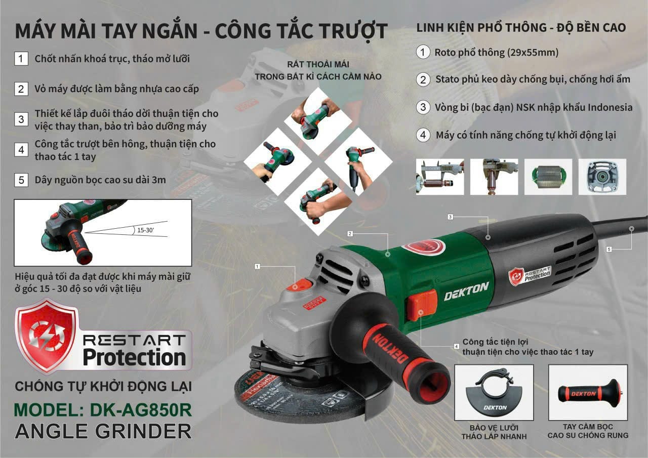 ✨Máy Mài Góc Dekton DK-AG850R chống tự khởi động lại
