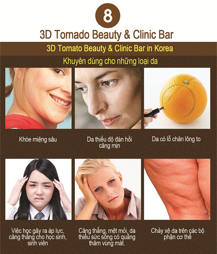 - Máy Massage 3D Tornado Beauty & Clinic Bar đa chức năng mang lại hiệu quả trong dưỡng da và phòng chống lão hóa. Bên cạnh đó máy còn có thể mát xa da đầu,