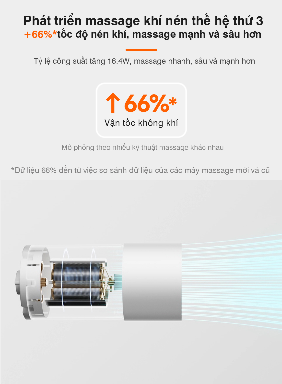 - CÔNG NGHỆ TÚI KHÍ BIONIC: Trải nghiệm sự massage mạnh mẽ với công nghệ túi khí Bionic, áp suất khí massage sâu và hiệu quả hơn bao giờ hết. - MÔ PHỎNG KỸ THUẬT MASSAGE BÀN TAY NGƯỜI: Đặc tính thiết kế với 6 điểm chạm massage mô phỏng bàn tay con người, mang lại trải nghiệm massage tự nhiên và êm dịu.