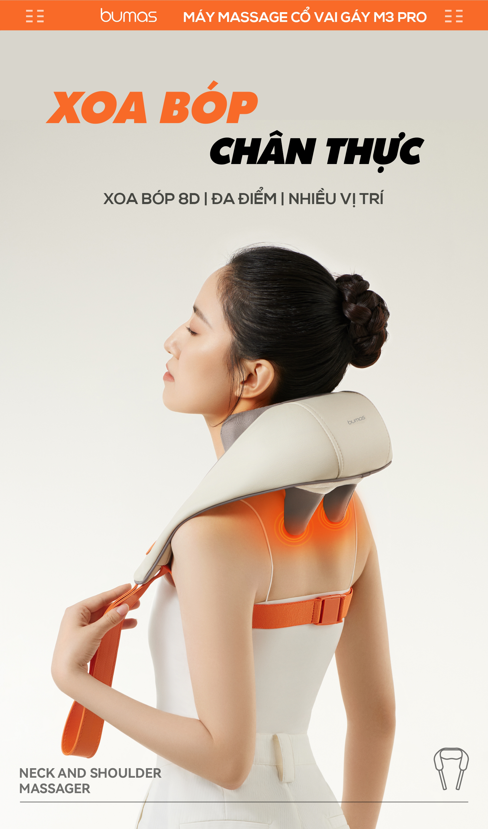 Máy Massage Cổ Vai Gáy M3 Pro Nâng Cấp Mới TÍNH NĂNG ĐẶC BIỆT CỦA SẢN PHẨM: KHÔNG GIỚI HẠN HOẠT ĐỘNG: Nâng cấp dây đeo vai kết hợp tay kéo dễ dàng