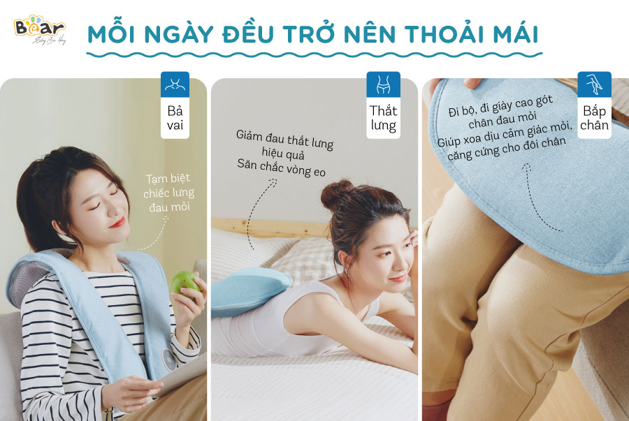 Sở hữu thiết kế thông minh, tác dụng thư giãn hoàn hảo máy đấm lưng Bear là sản phẩm thích hợp cho nhiều người dùng khác nhau. Nhân viên văn phòng, học sinh, phải ngồi lâu khi sử dụng máy sẽ làm giảm mệt mỏi, công việc trở nên nhẹ nhàng, làm việc và học tập hiệu quả hơn. Người cao tuổi: Máy Massage giúp tận hưởng cảm giác thư giãn tuyệt vời, giảm đau mỏi vai gáy và đau nhức cơ vô cùng tốt.