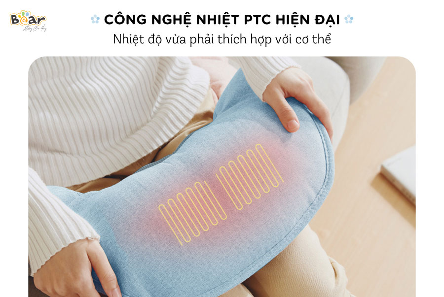 Không chỉ giúp thư giãn sâu, giảm đau mỏi cho cơ thể đai đấm lưng Bear còn được tích hợp nhiệt với công nghệ PTC, làm ấm nóng cơ thể khi đấm lưng giúp thúc đẩy và tăng cường tuần hoàn máu tốt hơn. Người dùng hoàn toàn có thể chọn chế độ có nhiệt hoặc không nhiệt trong quá trình sử dụng bằng nút bấm "M" trên bảng điều khiển vô cùng tiện lợi.