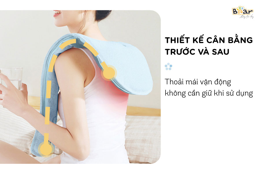 Máy đấm lưng Bear AMQ-A01X1 (MA-B01V1) thiết kế dạng đai cân bằng thông minh, sử dụng công nghệ Nhật Bản mô phỏng chân thật nhất phương pháp đấm massage như tay người giúp bạn thư giãn vùng cổ,