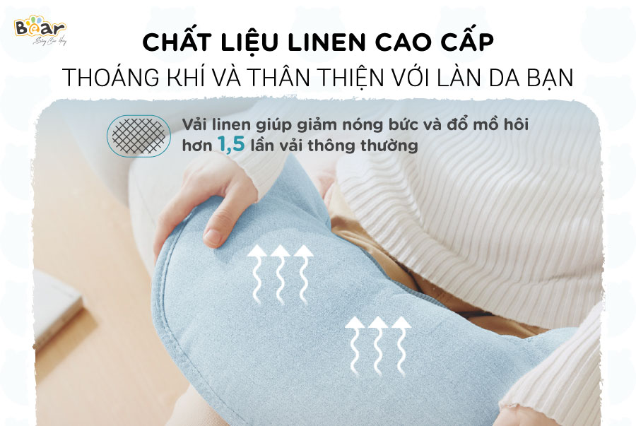 Mặt ngoài của đai đấm lưng Bear được bọc vải Linen tự nhiên cho khả năng thấm hút mồ hôi và tản nhiệt tốt hơn các loại vải khác 1,5 lần. Đặc phiệt phần đệm chỗ tay đấm của máy được bọc vải dạng lưới giúp giảm nóng bức và tản nhiệt tốt trong quá trình đấm.