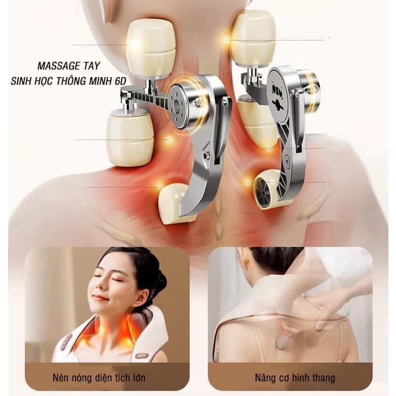 Máy massage cổ vai gáy, Máy massage toàn thân đa năng 6D công nghệ chườm nóng cao cấp, mô phỏng bàn tay người