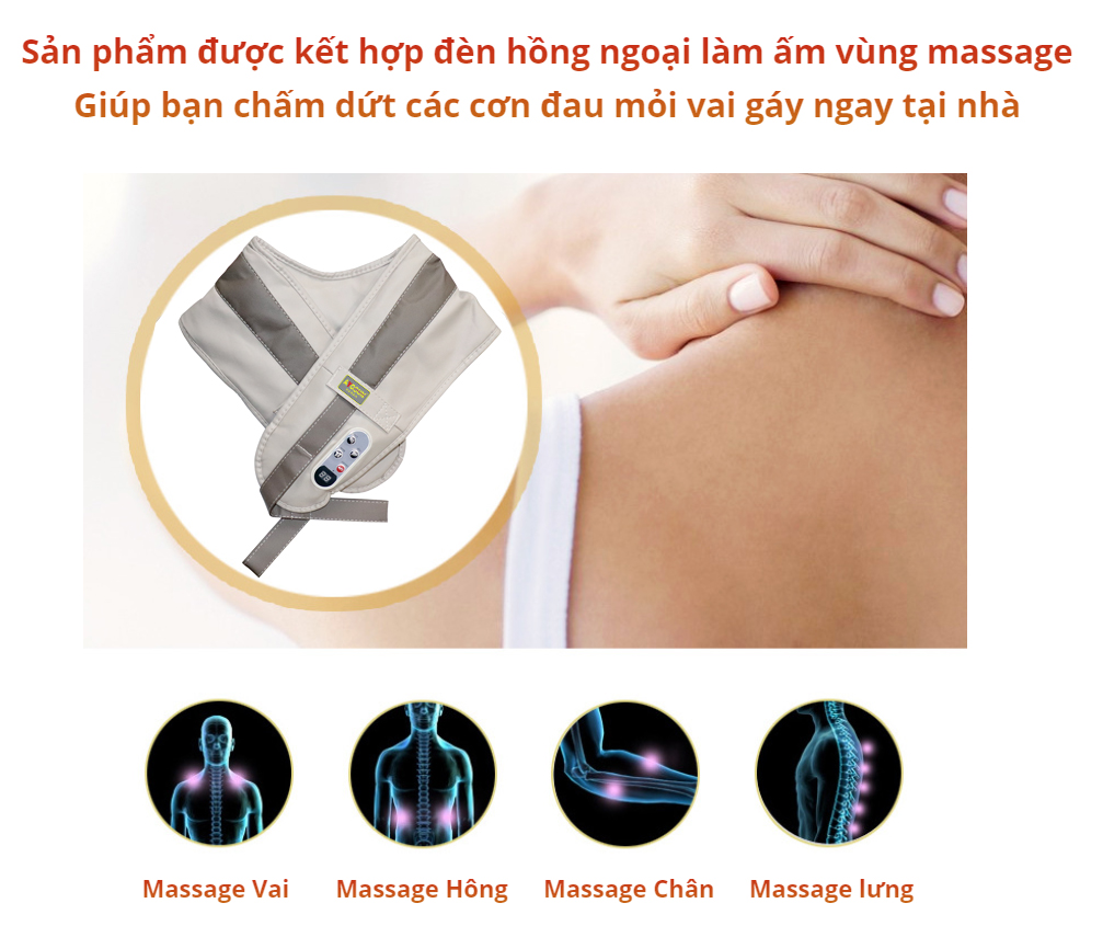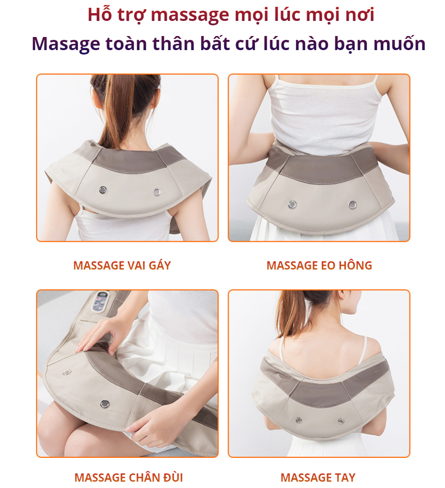 Massage nhẹ nhàng, thư giãn các vùng cơ chịu nhiều áp lực Thiết kế di động, lý tưởng để mang đi du lịch Có thể điều chỉnh tiện lợi với bảng điều khiển tích hợp
