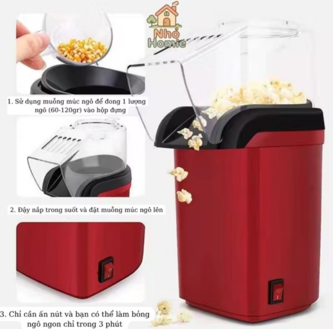 Công suất mạnh mẽ: Với công suất lên đến 1200W, máy làm bỏng ngô hoạt động nhanh và hiệu quả, chỉ trong dưới 3 phút bạn sẽ có ngay một bát bỏng ngô nóng hổi, thơm ngon.