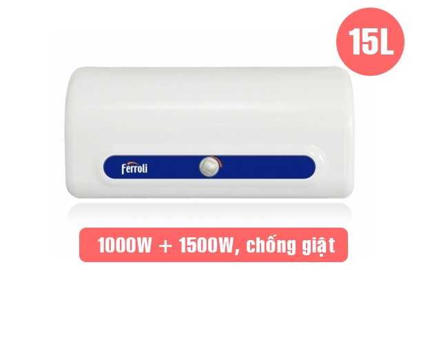 Bình nước nóng gián tiếp Ferroli QQAE 15Lít - Bình tráng Titan siêu bền - Lớp phủ men xanh vĩnh cửu - Thanh nhiệt tráng men siêu bền, chống bám cặn - Van xả cặn