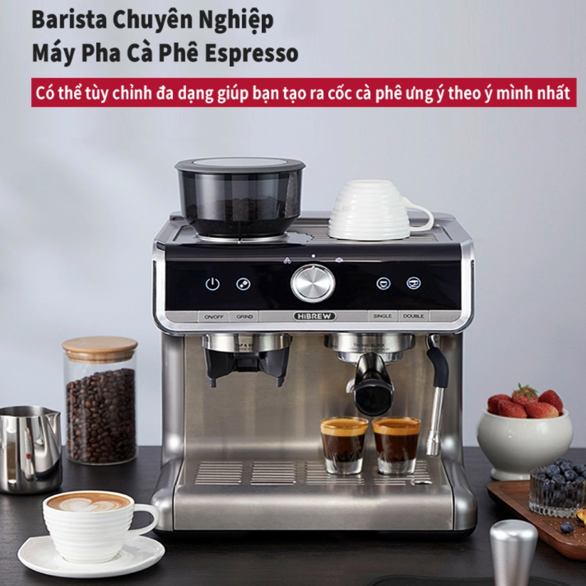 Máy pha cà phê bán tự động Espresso, Cappuccino, Latte thương hiệu Mỹ cao cấp HiBREW H10B - Hàng Nhập Khẩu Tiếp nối thành công phiên bản Máy pha cà phê espresso bán tự động