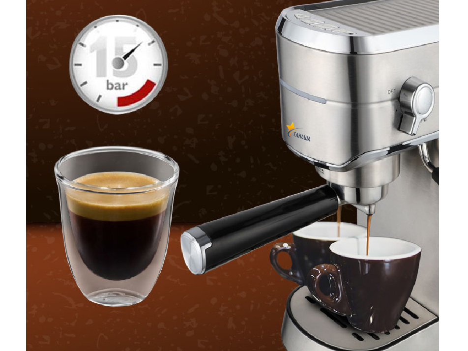 Máy pha cà phê Tahawa TS6212 - Máy pha cafe đa chức năng: Espresso, Cappuccino, Latte. Áp suất bơm: 15 bar - Công suất:1250W - 1450W. Có vòi đánh sữa - Bảo hành chính hàng 12 tháng