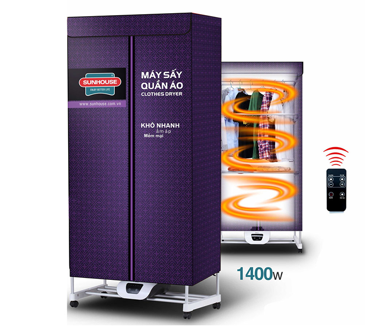Tủ sấy quần áo SUNHOUSE SHD2707 sử dụng công nghệ sấy làm khô tĩnh học – tức là sấy khô nhờ nhiệt đối lưu giúp làm khô nhanh quần áo, tránh mài mòn như khi treo dưới ánh mặt trời trực tiếp.