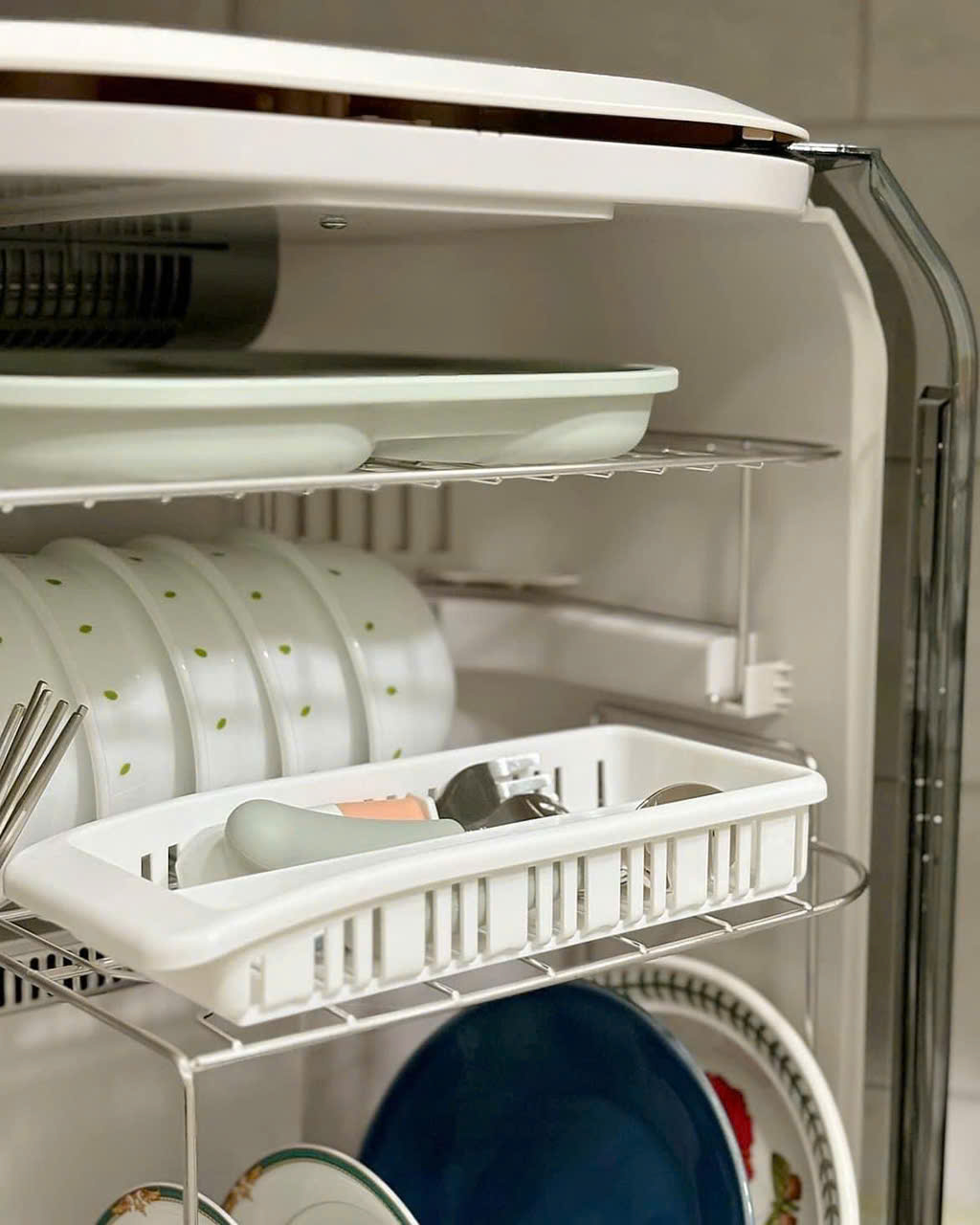 Mấy hôm nay trời mưa nhiều ẩm thấp mới thấy rõ tác dụng của chiếc máy sấy bát. Bát và cốc chén, đặc biệt là đũa rửa sạch xong cho vào máy sấy, tiệt trùng