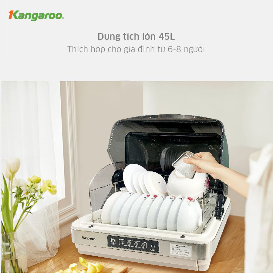 Máy sấy chén bát để bàn Kangaroo KG45DUV - SẤY KHÔ KHỬ KHUẨN BẰNG ĐEN UV