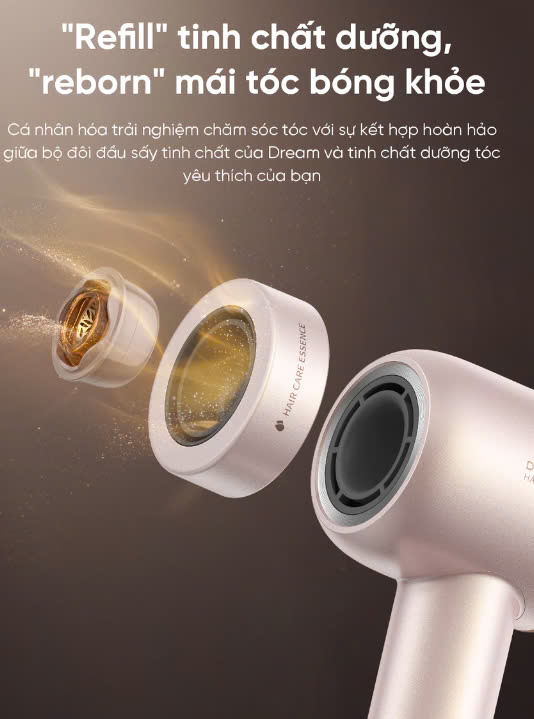 • Bổ sung đầu sấy kết hợp lõi tinh chất có thể re-fill. Cá nhân hóa trải nghiệm chăm sóc tóc với sự kết hợp hoàn hảo giữa bộ đôi đầu sấy tinh chất của Dream và tinh chất dưỡng tóc yêu thích của bạn
