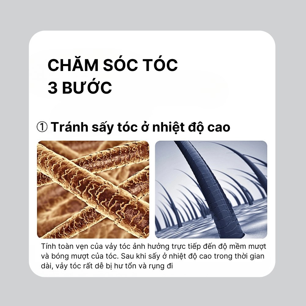 • Bước 3: Sấy tóc. Khi sử dụng, để máy sấy cách tóc ít nhất 3cm để tránh quá nhiệt và hư tổn tóc.
