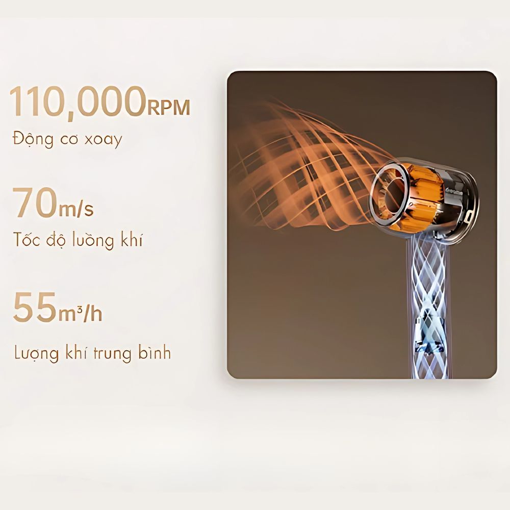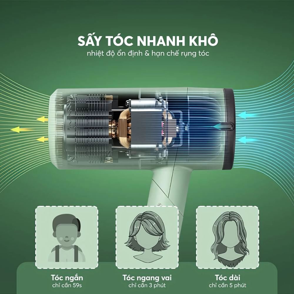 Công suất 1100W – Đủ mạnh để sấy tóc nhanh chóng mà vẫn tiết kiệm điện năng.