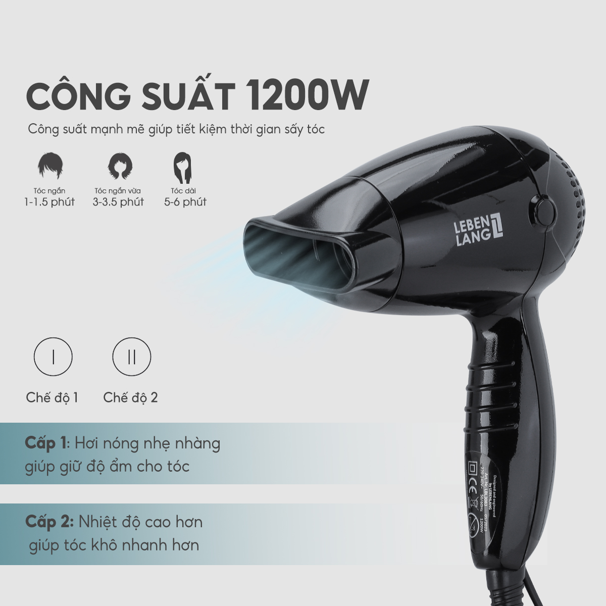 Máy sấy tóc mini Lebenlang LBL3083, chống xơ rối tóc bằng công nghệ ion 1200W, nhỏ gọn tiện lợi, bảo hành 2 năm - hàng chính hãng        6 LÝ DO NÊN CHỌN MÁY SẤY TÓC MINI LBL3083 CỦA LEBENLANG - Công Suất Mạnh Mẽ 1200W - Công Nghệ Ion Chống Xơ Rối Tóc - Chất Liệu Nhựa PC và ABS