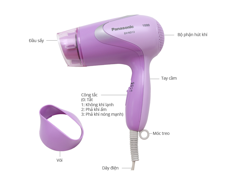 Máy sây tóc Panasonic EH-ND13-V645 trang bị chế độ sấy mát (số 1) phù hợp khi sấy tóc yếu, mỏng hay sấy tóc cho trẻ nhỏ.
